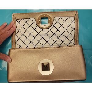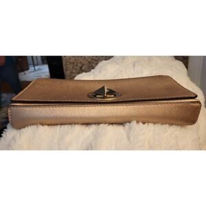 Kate Spade New York Gold Clutch Turnlock Leather Bag EUC