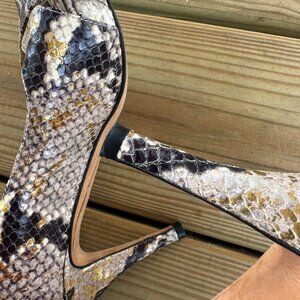 ✨ Peep toe | Snakeskin texture | Gold metallic detail