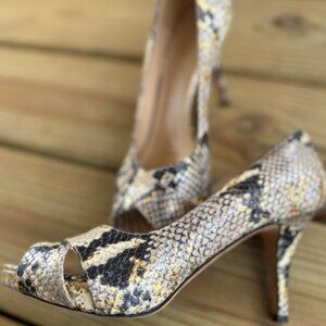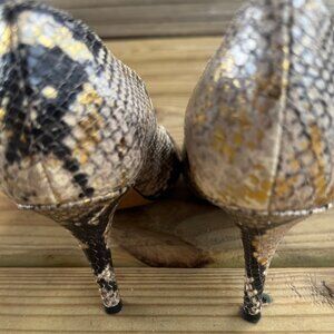 Kate Spade New York Gold Snakeskin Leather Peep Toe Heels 6.5 | Made in Italy