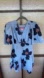 Blue printed cotton (100% Cotton). Hourglass. Short sleeves. V-neckline. Side zipper closure. 36.5" from shoulder to hemline. Imported.