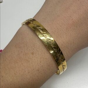 14k Gold Plated Bangle Bracelet engraved “Hand In Hand In Hand” On Exterior And “ There’s Strength In Numbers” And Kate Spade On Interior Of The Bangle