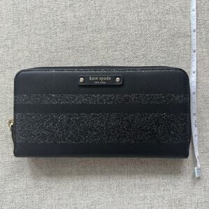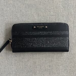 Black and silver striped Kate Spade wallet in excellent condition. Gently used, no known defects. Perfect as a holiday clutch.