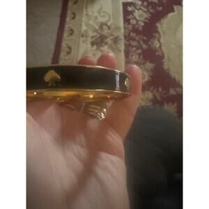 Kate Spade New York "Heart You" enamel hinged bangle bracelet. The black and gold design with the small gold heart logo is characteristic of this specific style from the brand.