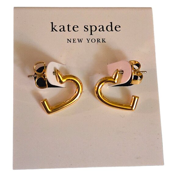 Kate Spade New York Heart You Gold-Tone Huggie Hoop Earrings, Authentic