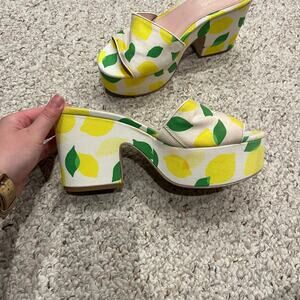 Kate Spade New York Ibiza Platform Sandals Sz 9.5 B Lemon Toss Print Preppy