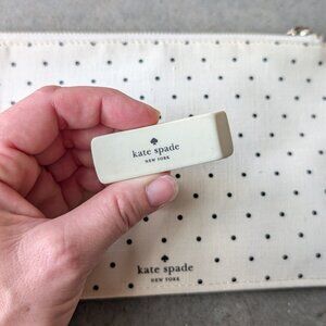 Kate Spade New York Ivory Black Polka Dots Zippered Leatherette Pencil Pouch