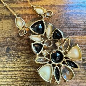 An achromatic palette skyrockets the versatility of this gilded necklace's statement-sized stone pendant.