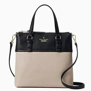 10x10x2 The Kate Spade New York Jackson Street - Hayley Leather Satchel is a Black & Beige leather bag