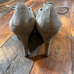 Elegant Italian-made Kate Spade booties in luxe taupe suede — perfect for fall and winter style.