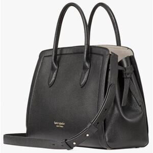 Crafted from a grained leather exterior and a staple satchel silhouette, the Knott Bag from Kate Spade features block coloring throughout, two top handles, side knot detailing, and a central zip compartment.