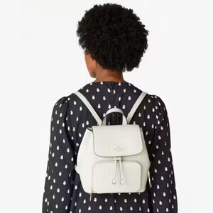 Kate Spade New York Kristi Medium Flap Backpack Quill Grey Refined Leather KA695