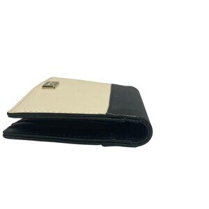 The Kate Spade New York Laurel Way Stacy Saffiano Leather Wallet in Black & Warm Beige is a stylish bi-fold wallet. Made from leather, it features various compartments such as credit card slots, a zip coin pocket, and bill slots for easy organization. The wallet also includes accents like a zipper closure, snap closure, and the iconic Kate Spade logo. With dimensions of 3.5 inches in height and 7 inches in width, this wallet is both practical and fashionable for everyday use.