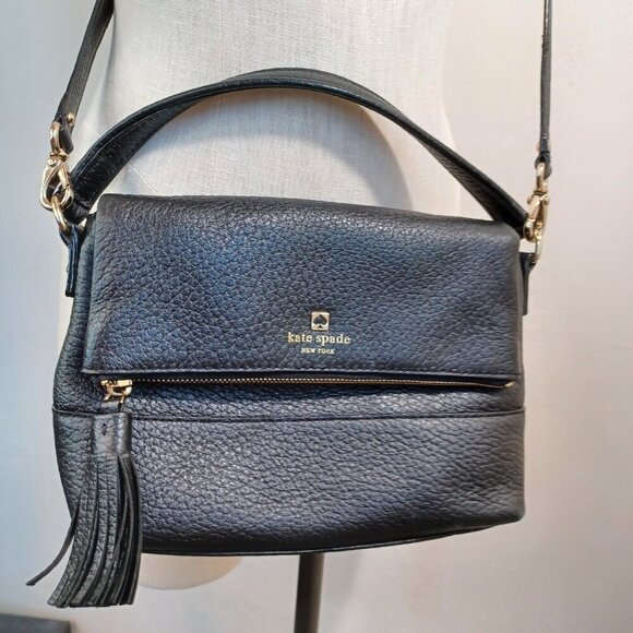 Kate Spade New York Leather Bag Black Pebble Crossbody Handbag Purse