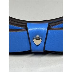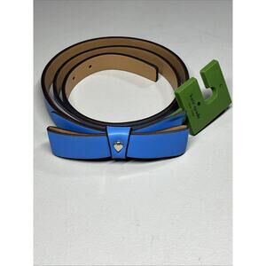 Kate Spade New York Leather Bow Belt LARGE Spade Logo Riverside Blue & Gold