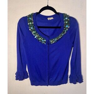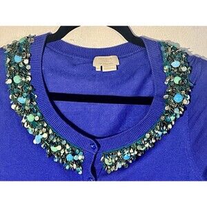 Kate Spade New York 'Leni'Crystal Embellished Jewel Cardigan 3/4 Sleeve Blue XS