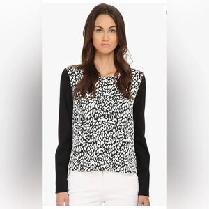 Nice Kate Spade New York leopard jacquard panel top blouse. Features pull-over with sip in back, round neck, long sleeves & jacquard.