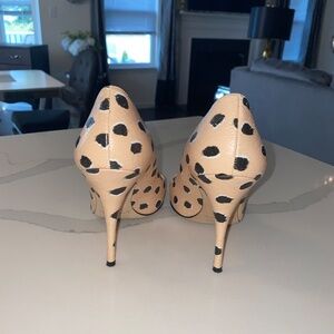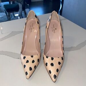 This is a leather Stiletto heel from Kate Spade New York in US size 8. It features stylish shell accents and a sleek design, perfect for a sophisticated look.