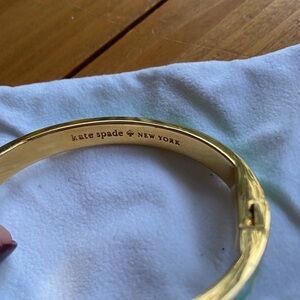 Kate Spade New York Like Hotcakes Gold Tone Teal Enamel Bangle Bracelet with Bag