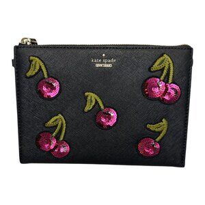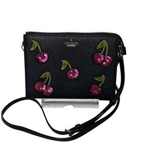 RARE: Leather Kate Spade New York Ma Cherie Cherries Dilon crossbody that comes new in box, with dusty. Perfect sized handbag for day or night. Can be used as a clutch or crossbody. Sequin cherry appliqués and logo detail on front.