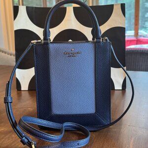 Brand New with Tag Color: Rose Smoke Measurements 7.48" H x 4.68" D 9.68" W at bottom Features Strap Drop: 22" Metal pinmount logo Closure Type: Drop in top zip closure Dust Bag Included: No Interior: back slip pocket Exterior: front slip pocket Materials Saffiano Leather Lining: Two way script logo lining