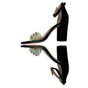 Elevate your style with these exquisite Kate Spade New York Marci sandals. Featuring a sophisticated black suede leather design, a striking clear strap adorned with bead embellishments, and a comfortable chunky block heel, these sandals promise both elegance and comfort. Ideal for formal events or a night out, they blend luxury with modern chic.