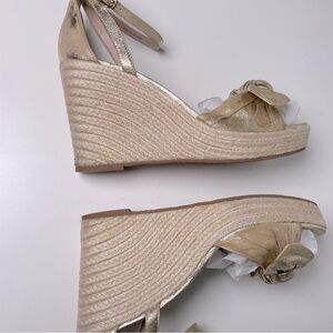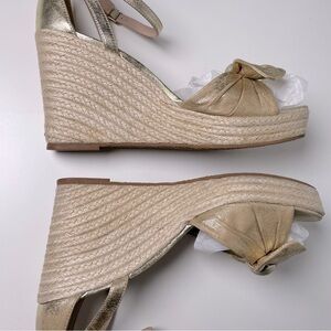 Kate Spade New York Metallic Gold Wedge Sandals with Bow – Size 11B