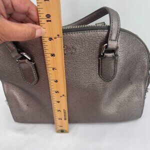 Chic and elegant Kate Spade New York metallic leather satchel with stunning jeweled embellishments on the sides. Crafted from 100% cow leather with silver-tone hardware and lined with the brand’s signature logo fabric. Features dual top handles and a zip-top closure for security. Perfect for adding a touch of glam to both everyday and evening looks.