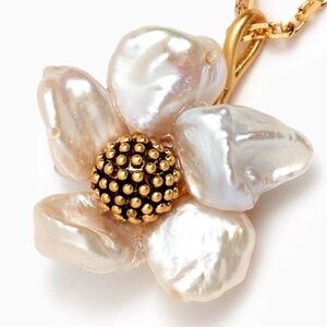 Kate Spade New York Mini Pearl Pendant Gold plated Brass Floral Pendant Necklace