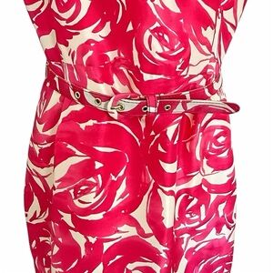Kate Spade New York Minnie Rose Silk Dress Size 8 Belted Sleeveless Floral Pink White