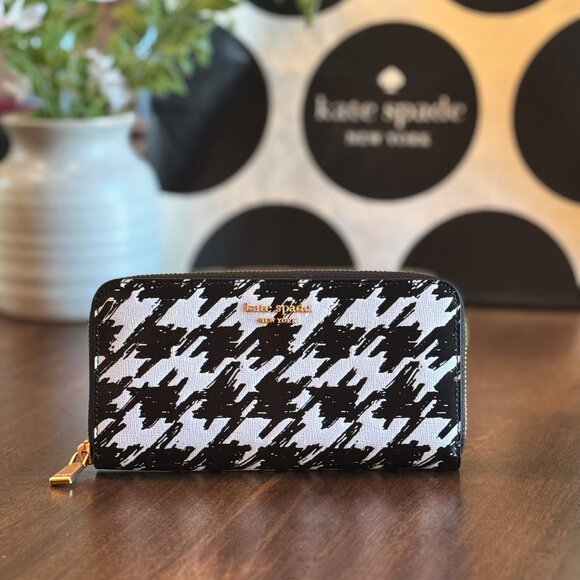 Kate Spade New York Morgan Painterly Houndstooth Zip Around Continental Wallet