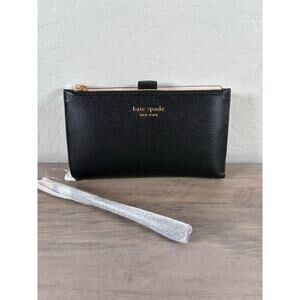 Kate Spade New York Morgan phone Bi Fold wallet Wristlet black Saffiano Leather