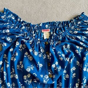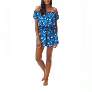 Kate Spade New York Off-The-Shoulder Cover Up Romper Blue White Size Medium