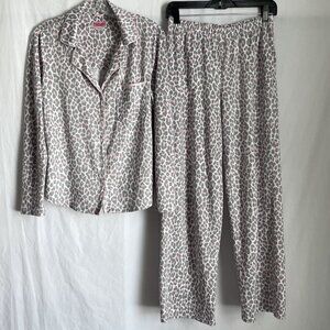 Kate Spade New York Pajamas 2 Piece SET Size S Pink Leopard Print PJ Top Pants