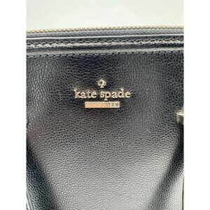 This Kate Spade New York handbag features a sleek black leather design with a structured silhouette. Its double handles and zip closure offer both style and functionality. Ideal for elevating your everyday essentials while maintaining an elegant appearance.