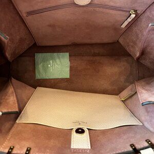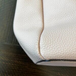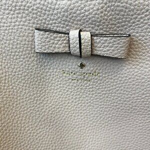 This Kate Spade New York tote is crafted from high-quality pebbled leather in a soft blush pink shade and features a classic structured silhouette with dual shoulder straps and a bow accent on the front. The bag is spacious enough for daily essentials and perfect for work, travel, or everyday use. It is in good pre-owned condition with no tears or major stains. Color may vary slightly based on lighting.