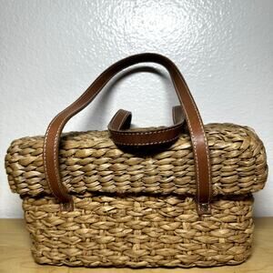 Kate Spade New York Picnic Bag Wicker Basket Box Rattan Handwoven Tan