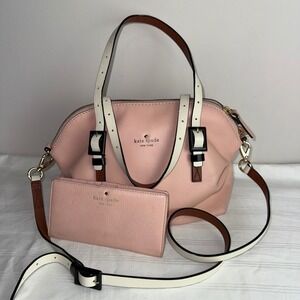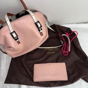 Kate Spade New York Pink Leather Dome Satchel Shoulder Bag & Wallet Set Dust Bag
