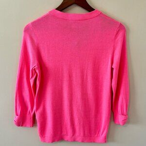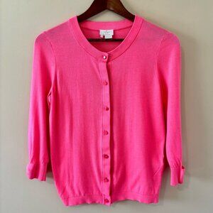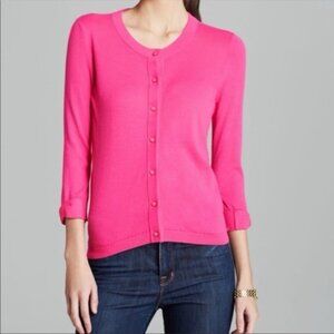 This vibrant pink cardigan sweater from kate spade is perfect for adding a pop of colour to your wardrobe. Its soft fabric and classic design make it a versatile choice for any occasion. Size medium. In very good condition, laundered and ready to wear.