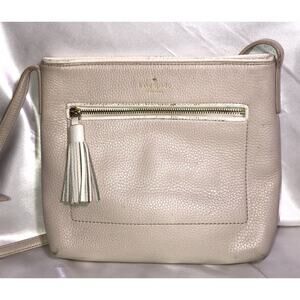Kate Spade New York Purse Cross Body Tan Pebble Leather Tassle Front Zipper Pull