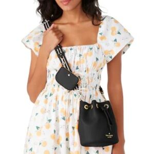 New with tags Mini Kate spade bucket bag. The leather is so soft. Perfect mini for on the go. You could even swap out the bag strap for a solid leather or even a chain for a different look. Adjustable strap and coin pouch.