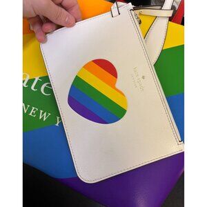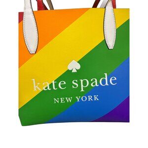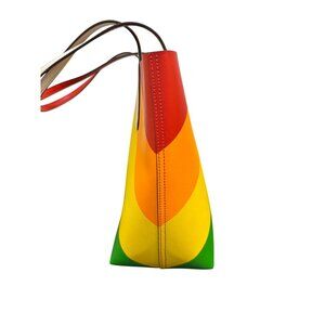 This spacious tote bag by Kate Spade New York features vibrant rainbow stripes, durable leather construction, and elegant double handles for effortless carrying.