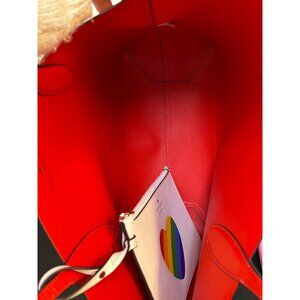 Kate Spade New York Rainbow Striped Leather Tote Bag With Red & White Handles