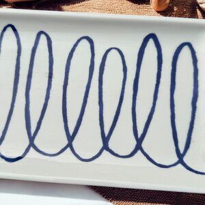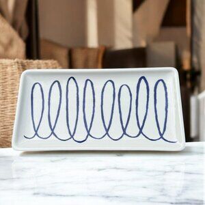 Kate Spade New York Rectangular Charlotte Street Blue Swirl Ceramic Tray 10"X5"