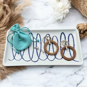 This elegant Kate Spade New York ceramic tray features a sleek rectangular design adorned with a stylish blue pattern.