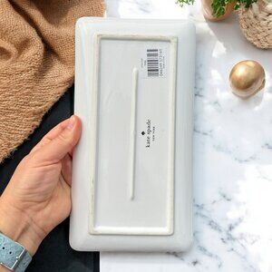 This elegant Kate Spade New York ceramic tray features a sleek rectangular design adorned with a stylish blue pattern.