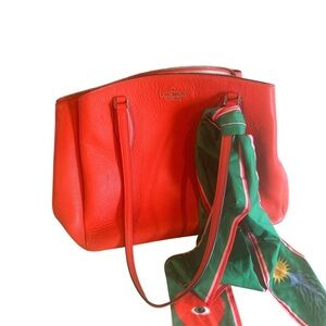 Kate Spade New York Red Leather Tote Shoulder Bag w/Scarf