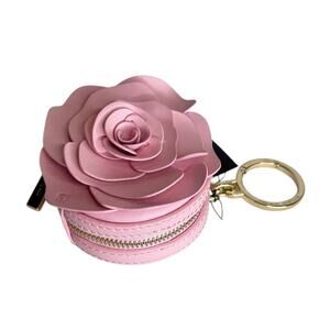 Kate Spade New York Rose Flora 3D Key Ring Charm Coin Purse, Pink NEW