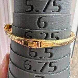 We say, stack your bracelets to make a statement. This makes the first one in your pile. Or the 100th. Plated metal, hinge closure. Style number: wbru 4154. Elegant gold bangle bracelet with a knot design. Hinge clasp to close. Perfect for any occasion. Measures 2.5" long, 2.5" wide. Opening is 2 3/16" diameter. Bracelet width is about 1/8". Rounded metal style with twisted knot. A great preppy minimalist style
