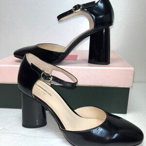 Kate Spade New York Serene Black Leather Iconic Spade Mirror Heels Size 6.5M