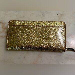 Kate Spade New York Shimmy Glitter Gold Card Holder Women’s Zip Around Wallet
